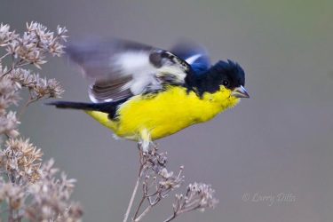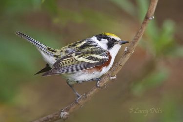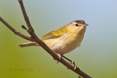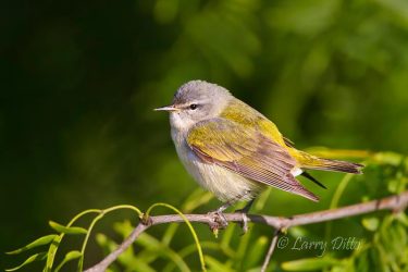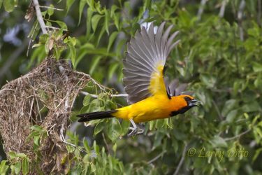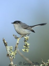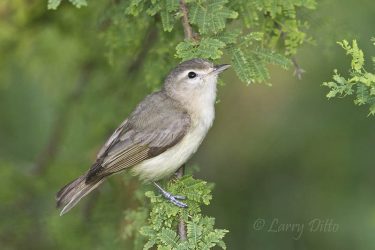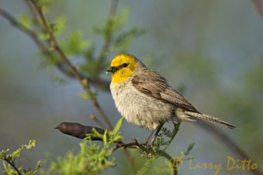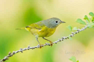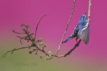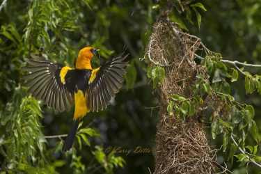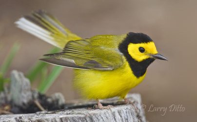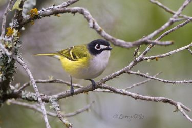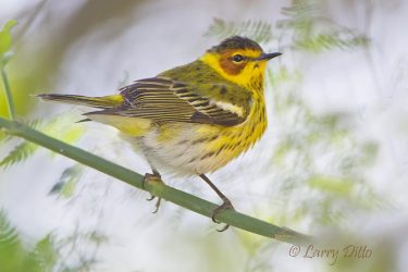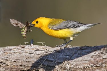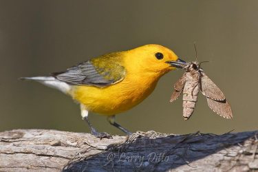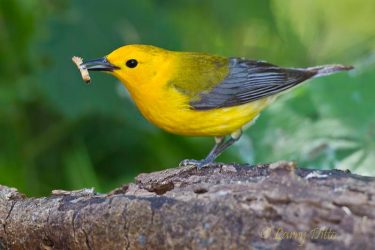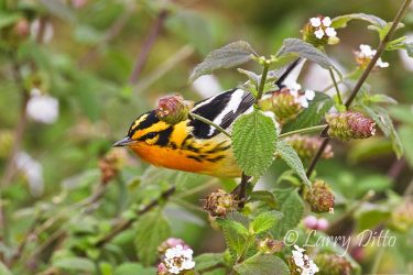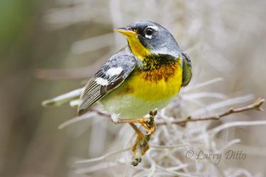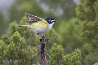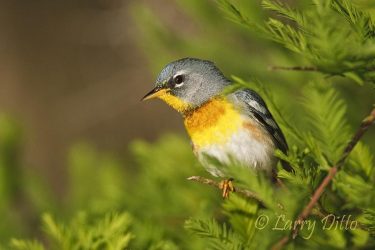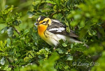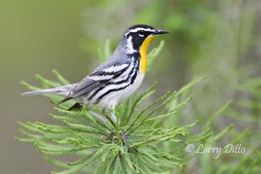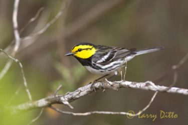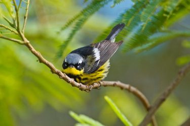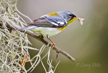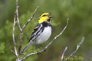 Golden-cheeked Warbler (Dendroica chrysoparia), male with insect for courting female, Texas hill country west of San Antonio