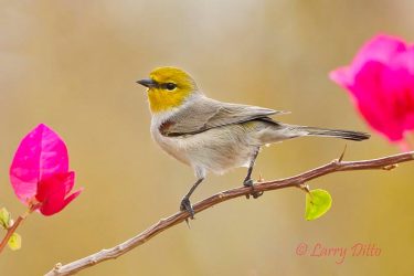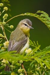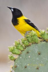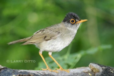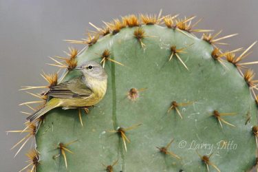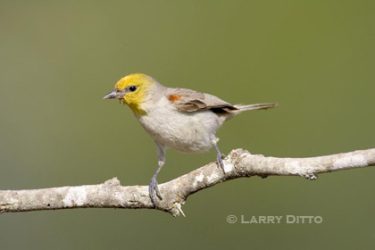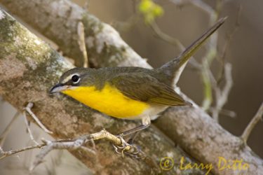 Mangrove Warbler (Dendroica erithacorides) male singing on territory, May, Rancho Los Ebanos, Tamaulipas, Mexico