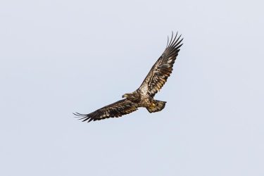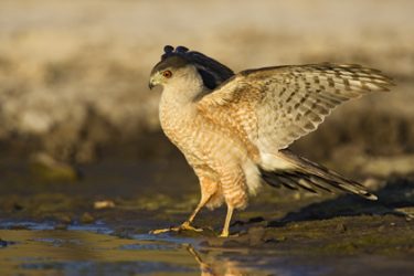 Common Black-hawk (Buteogallus anthracinus) juvenile perched on post at Rancho Los Ebanos near Tepeguaje, Tamaulipas, Mexico on the Gulf of Mexico