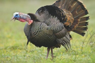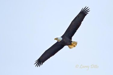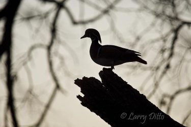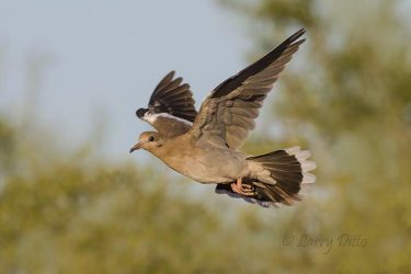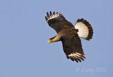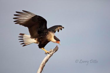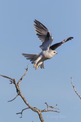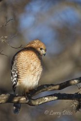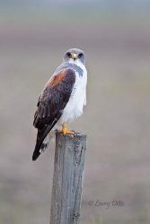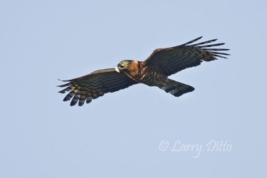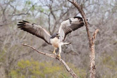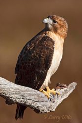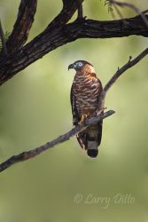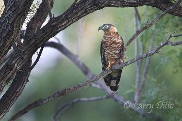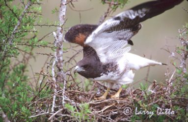 Swainson's Hawk hunting from perch in mesquite tree habitat, s. Texas, spring.