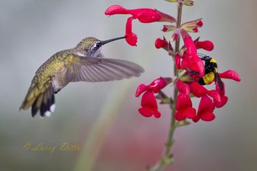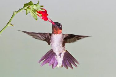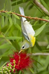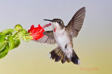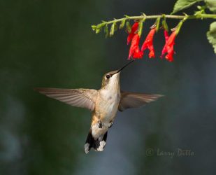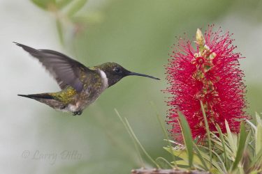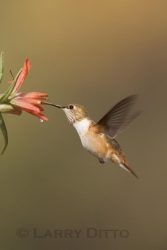 Buff-bellied Hummingbird nectaring at blooms of Coral Bean on South Padre Island, Texas, spring migration, May
