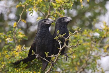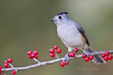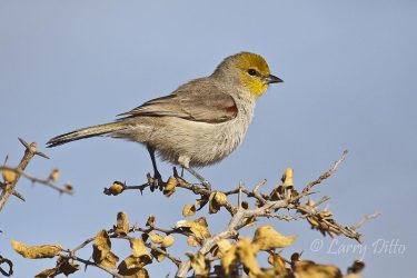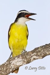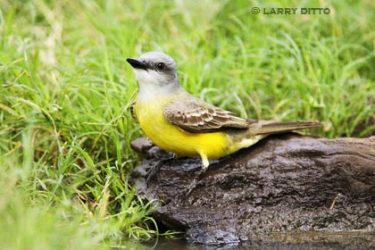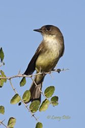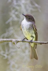 Couch's Kingbird (Tyrannus couchii) perched in Anacua tree in fruit, September. Bird was feeding on the ripe fruits, s. Texas