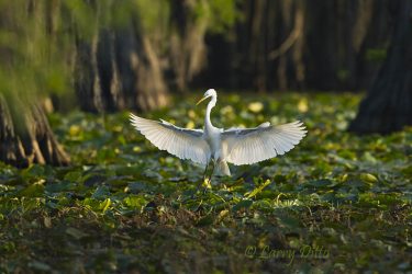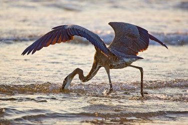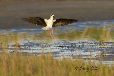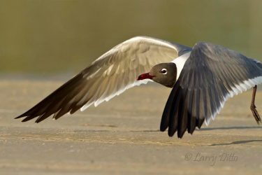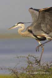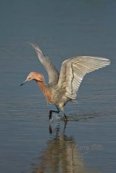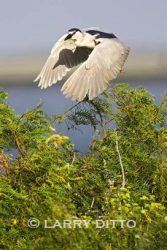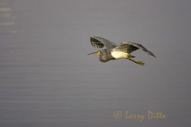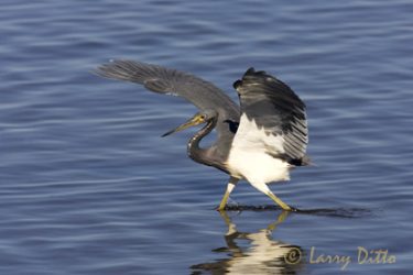 Tricolored Heron (Egretta tricolor) landing on tidal flat, Laguna Madre by South Padre Island World Birding Center