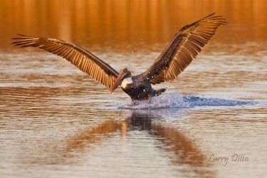 Brown Pelican (Pelecanus occidentalis) diving for fish, Texas coast, winter, adult at Goose Island State Park