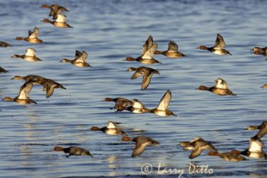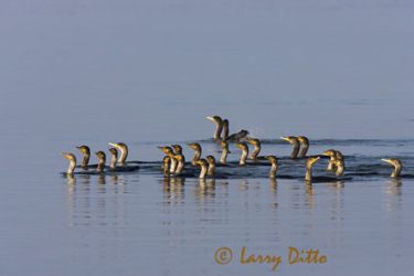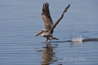 Brown Pelican (Pelecanus occidentalis), Texas gulf coast, chasing fish in Laguna Madre at South Padre Island, winter