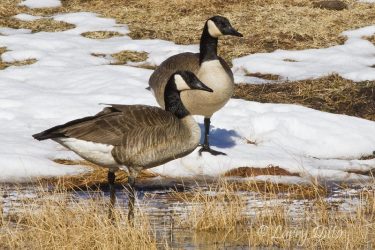 Resident Canada Geese (Branta canadensis) grazing on the shores of Lake Arrowhead (State Park) near Wichita Falls, Texas; spring