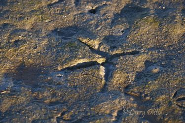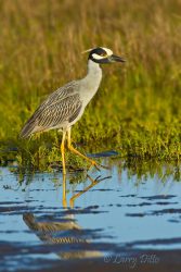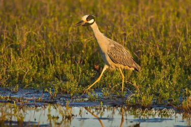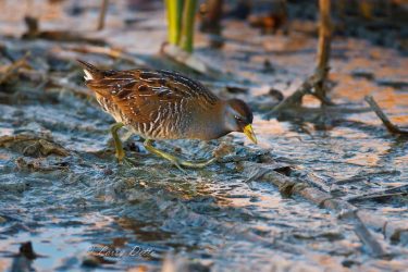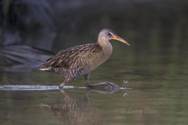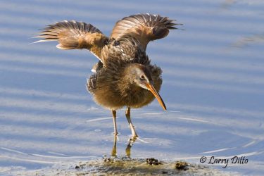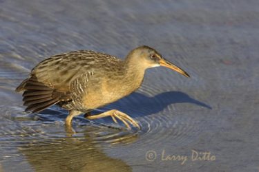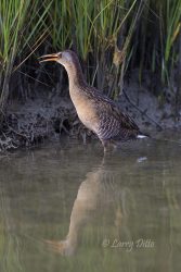 Clapper Rail (Rallus mexicanus) at the edge of a salt marsh, South Padre Island World Birding Center, sunset, winter