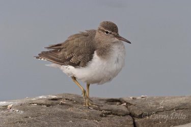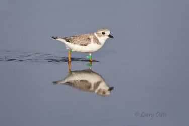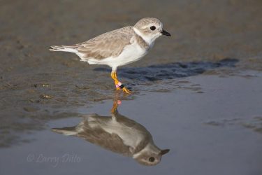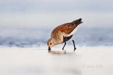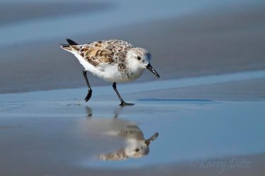 Sanderling (Calidris alba) winter plumage, Boca Chica Beach near the mouth of the Rio Grande, south Texas, March. This one-legged bird was as fast as the others