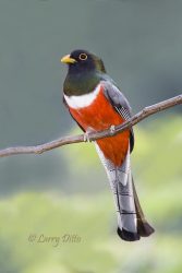Elegant Trogon (Trogon elegans) male taking off from perch in sub-tropical woodlands near Gomez Farias, Tamaulipas, Mexico in the El Cielo Biosphere Reserve