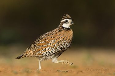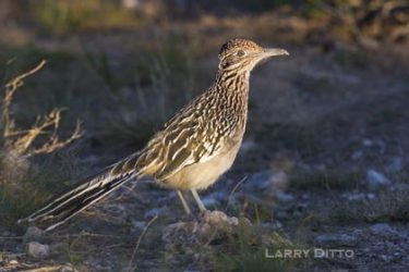 Burrowing Owl (Athene cunicularia) emerging from rocky cover to begin an evening hunt, Mission, Texas