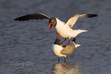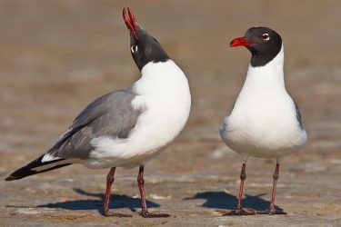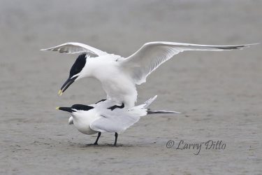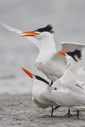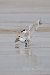 Caspian Tern with fish for its mate, Galveston Bay, Texas, spring