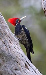 Lineated Woodpecker (Dryocopus lineatus) male at nest tree, Rancho Los Ebanos near Tepeguaje, Tamaulipas, Mexico