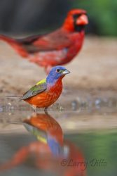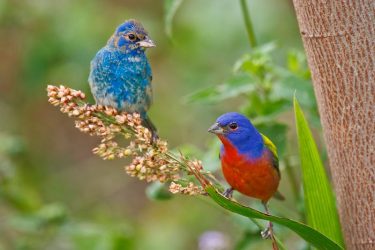 Evan and Alyssa Engel (12 & 9) feeding a hungry, migrating scarlet tanager on South Padre Island, Texas in April.