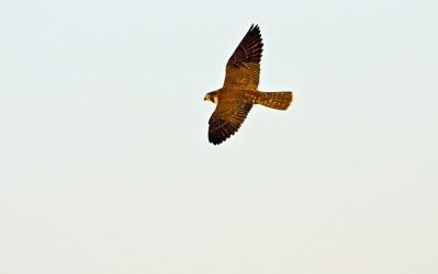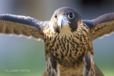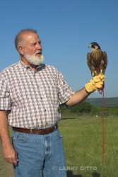 Bill Heinrich of the Peregrine Fund releasing peregrine falcon, female, at South Padre Island, Texas