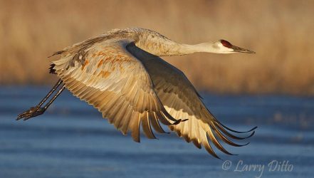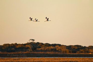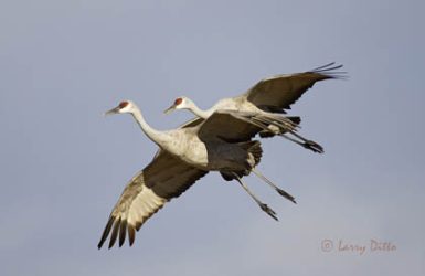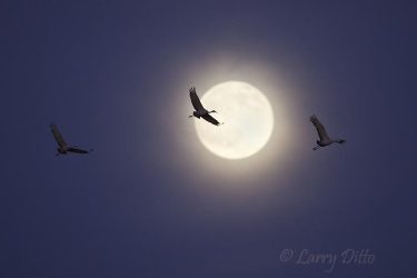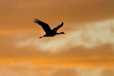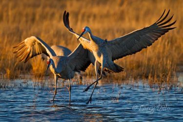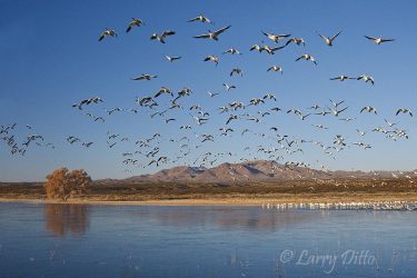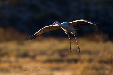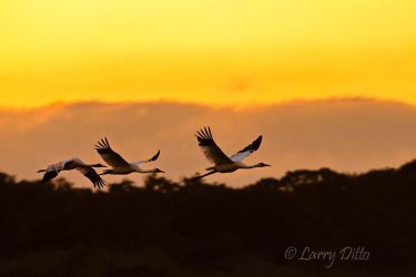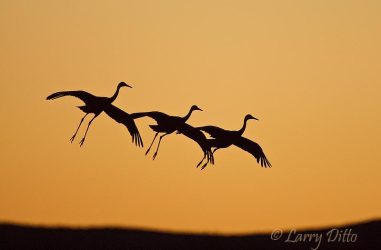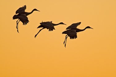 Sandhill Cranes (Grus canadensis) in flight at sunrise, Bosque del Apache National Wildlife Refuge, New Mexico