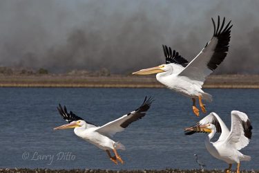Caspian Tern, nesting colony, adult carrying fish to mate, bonding,