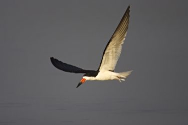 Black Skimmer (Rhynchops niger) in winter plumage fishing on the Laguna Madre near South Padre Island, Texas