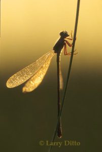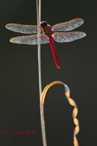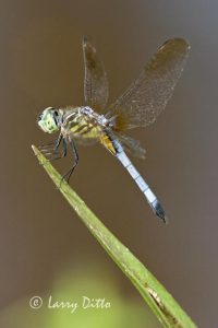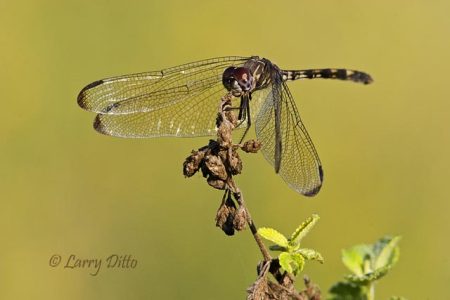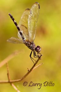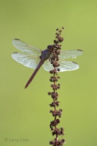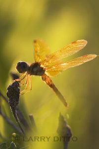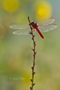 Needham's Skimmer (Libellula needhami) dragonfly, male perched on cattail in marsh, south Texas, September