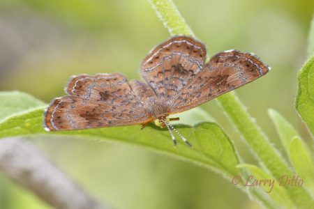 Red-bordered Pixie butterfly (Melanis pixie) sunning on Turk's Cap leaf, McAllen, Hidalgo County, Texas, July