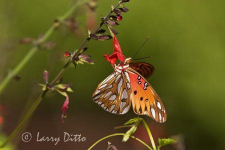 Julia Heliconian (Dryas julia) has one of the largest wingspreads of any Texas butterfly. Mist flowers and dozens of other flowering plants species attract a array of butterflies at the Old Hidalgo Pumphouse.