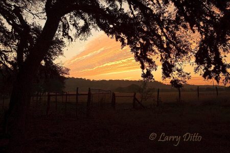 Honey Mesquite (Prosopis glandulosa) growning on a s. Texas ranch. Mesquites take on many interesting forms. This one is almost laying on its side.