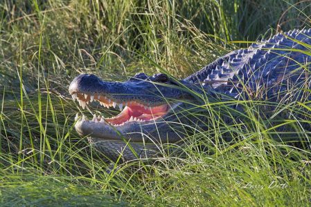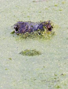 American Alligator (Alligator mississipiensis) floating among lily pads at Brazos Bend State Park, Texas