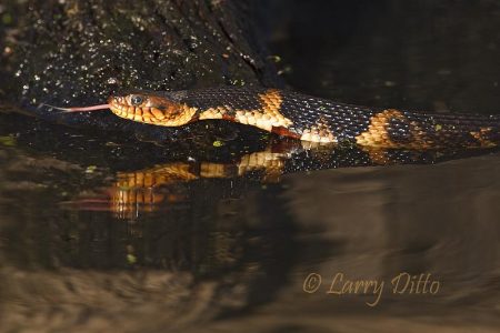 Texas Indigo Snake drinking at s. Texas ranch pond, spring