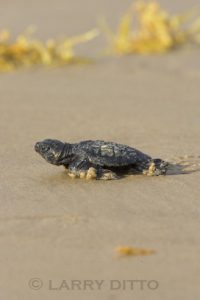 Master Naturalists, Dita Strohmeyer (banded shirt) and Linda McGonigle (dark glasses) assist Sea Turtle, Inc. and the U.S. Fish and Wildlife Service with searches and information gathering associated with endangered Kemp's Ridley Sea Turtle nests each spring and summer at South Padre Island. Here they refine their techniques on a mock nest at the foot of the South Padre dunes. Their work includes locating nests, measuring tracks and nest size, and assisting in the removal of eggs to a sancturary where they are hatched. The young are then released at the nest site as assisted in reaching the safety of the surf.